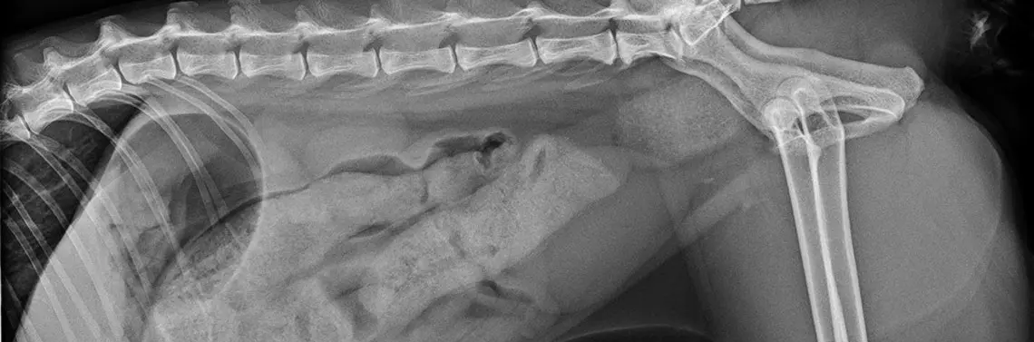 W momencie przyjęcia do Szpitala Małych Zwierząt „AniCura Bagarmossen” pacjent od dwóch dni nie oddawał stolca. Był osowiały, kilkakrotnie wymiotował. W trakcie obmacywania i w badaniu rektalnym stwierdzono obecność twardych mas kałowych w okrężnicy oraz miękkiej masy po stronie dogrzbietowej odbytnicy.